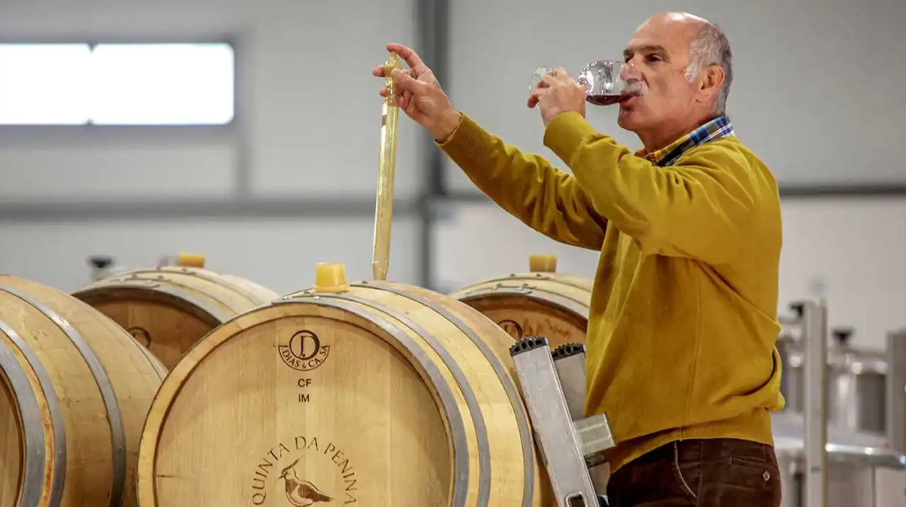 In the late 1900s and early 2000s, white wines had almost no value in Portugal, so he chose to plant only red grape varieties. Later, the market began to consume rosés and whites and then it had to adapt the exploitation, with grafting, with national white varieties Viosinho, Arinto, Sercial, Verdelho, Rabigato and Códega do Larinho. The cellar also evolved in terms of area, storage and machinery, with a capacity of 300,000 liters today. The current farm comprises about 22.5 hectares of vineyards for wine and 4.5 hectares of citrus.